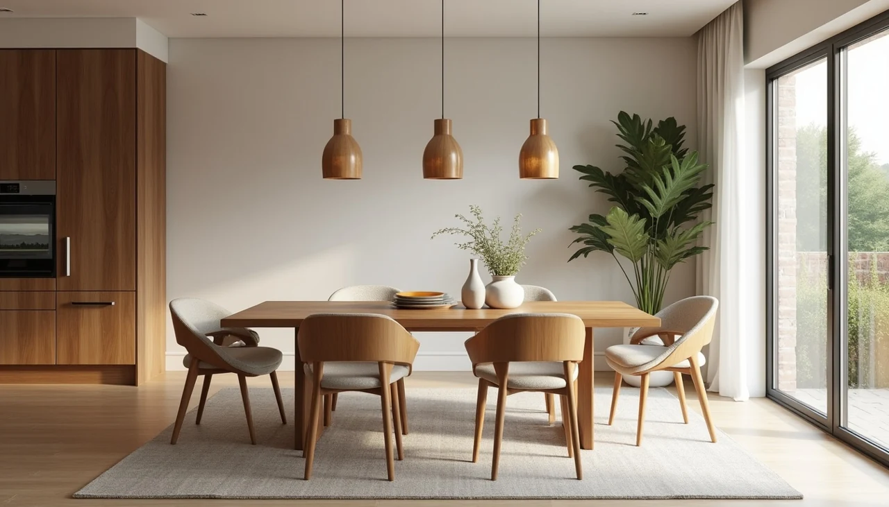 Yemek masasının üzerinde doğru aydınlatma kullanmak, seçilen mobilyanın etkisini artırır. Sarkıt aydınlatmalar masayı odak noktası haline getirir. Çok küçük bir avize büyük masada zayıf kalabilir, çok büyük bir aydınlatma ise alanı boğabilir. Işık rengi de önemlidir; sıcak tonlu ışık yemek alanında daha davetkâr bir atmosfer oluşturur.